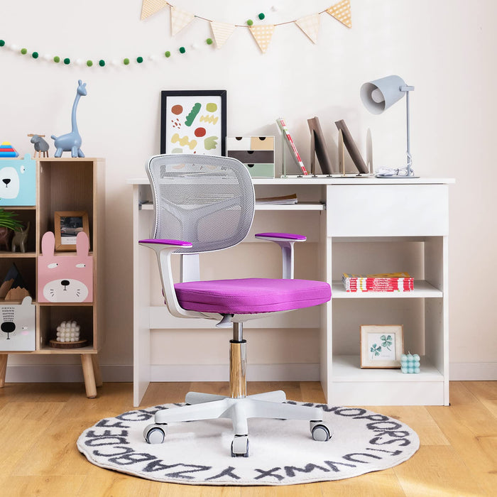 Student Ergonomic Computer Chair w/Adjustable Height, Swivel Rolling Kids Office Chair for 3-15