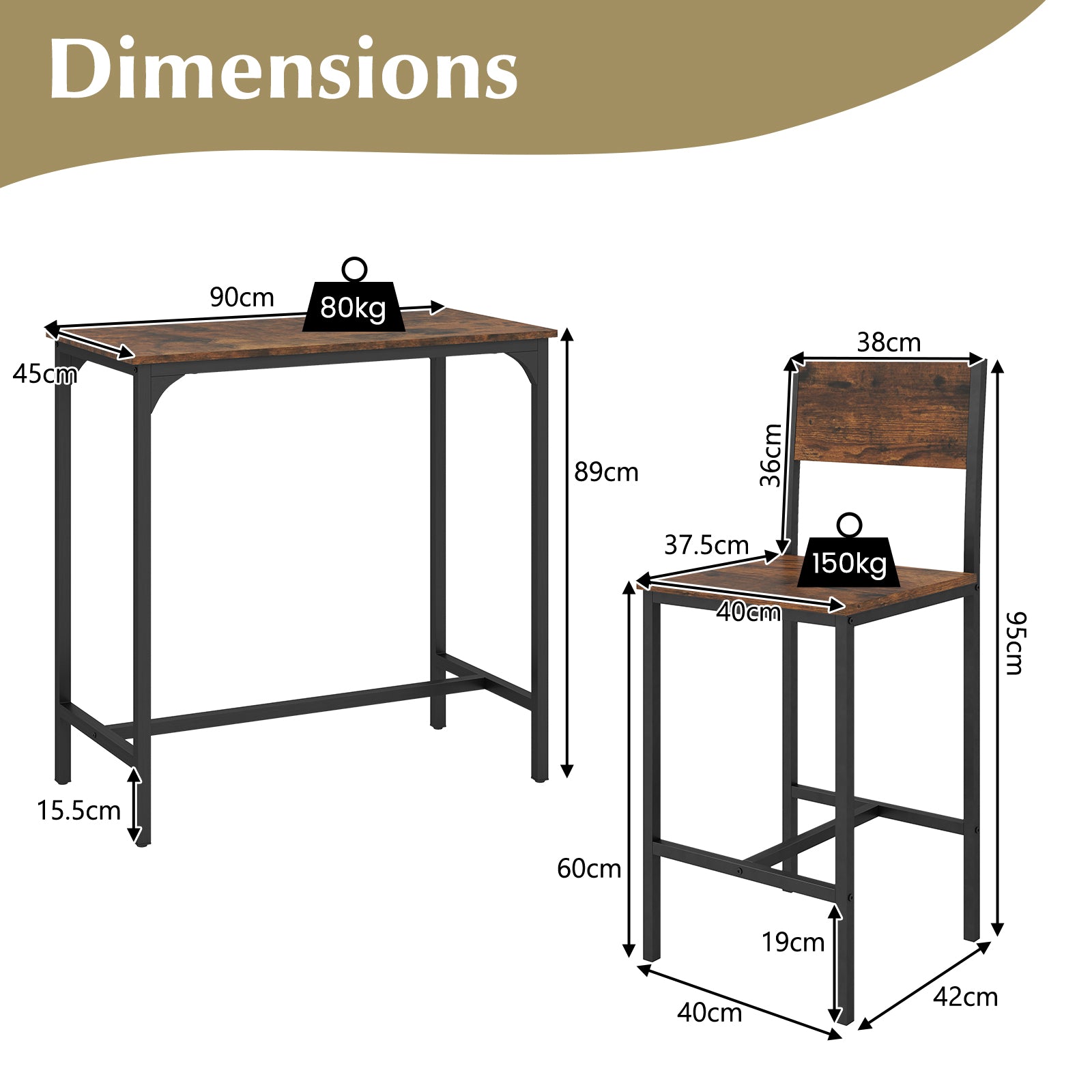 3 Piece Bar Table & Chair Set, Kitchen Table w/ 2 Bar Stools