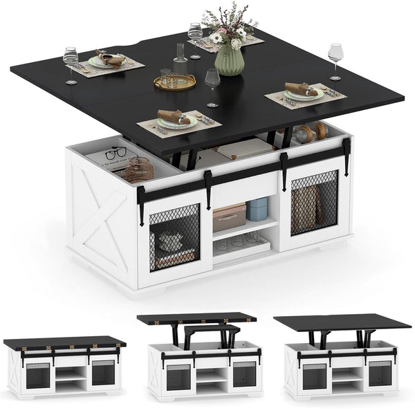 3-in-1 Convertible Dining Table with and 3 Hidden Storage Compartments
