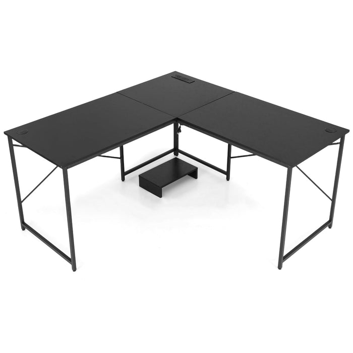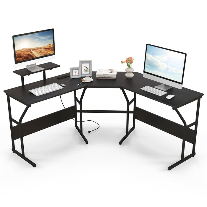 L-shaped Desk w/ Power Outlet Computer Desk Corner Gaming Desk for Home & Office
