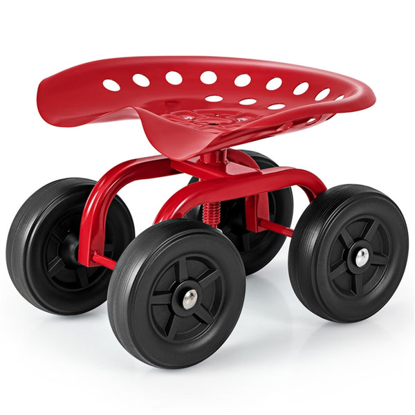 Garden Cart with Seat, Heavy-Duty Rolling Outdoor Wagon Scooter w/Height Adjustable & 360° Swivel Seat