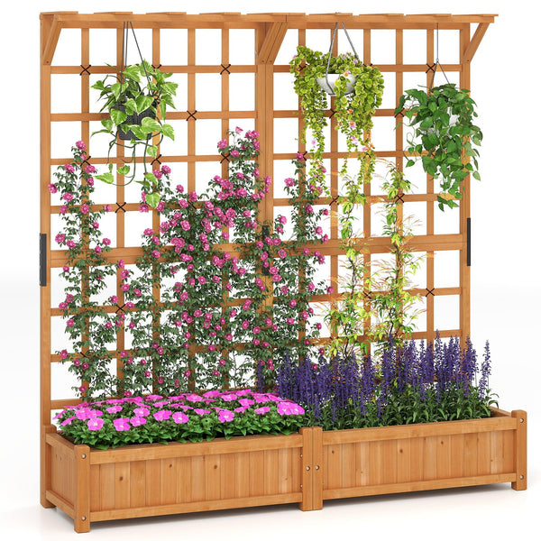 Giantex Raised Garden Bed with 2-Sided Trellis & Hanging Roof, 31" x 12.5" x 60"
