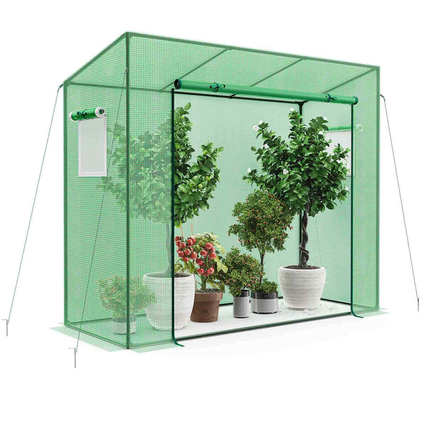 215 cm Portable Lean-to Walk-in Wall Greenhouse w/ Weatherproof PE Cover Outdoor