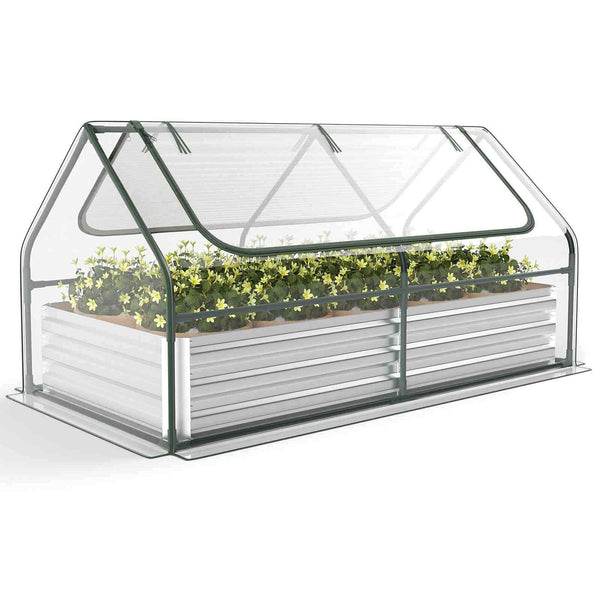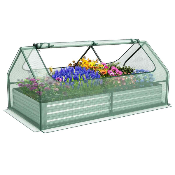 180 x 90 x 91cm Galvanized Raised Garden Bed w/ Greenhouse & Dual 2-Tier Windows