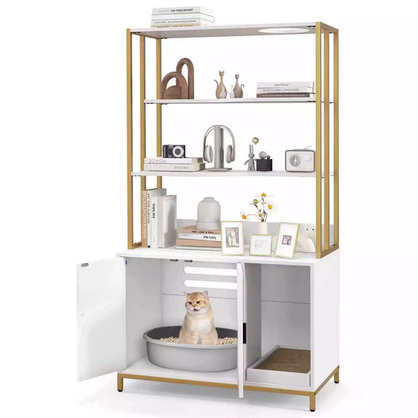 Cat Litter Box Enclosure with Storage Shelves Hooks Large Hidden Cat Washroom
