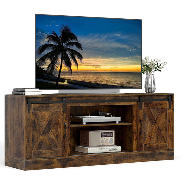 Farmhouse TV Stand for 70" TVs Entertainment Center with Sliding Barn Doors