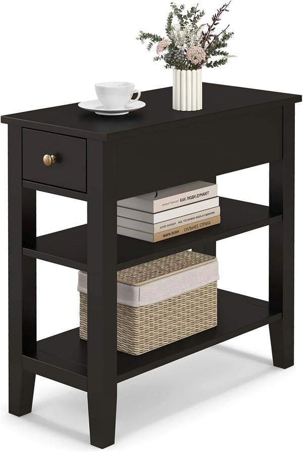 Giantex 3-Tier End Table w/Drawer Side Table with One Drawer and Double Shelves Narrow Tiered Nightstand for Bedroom