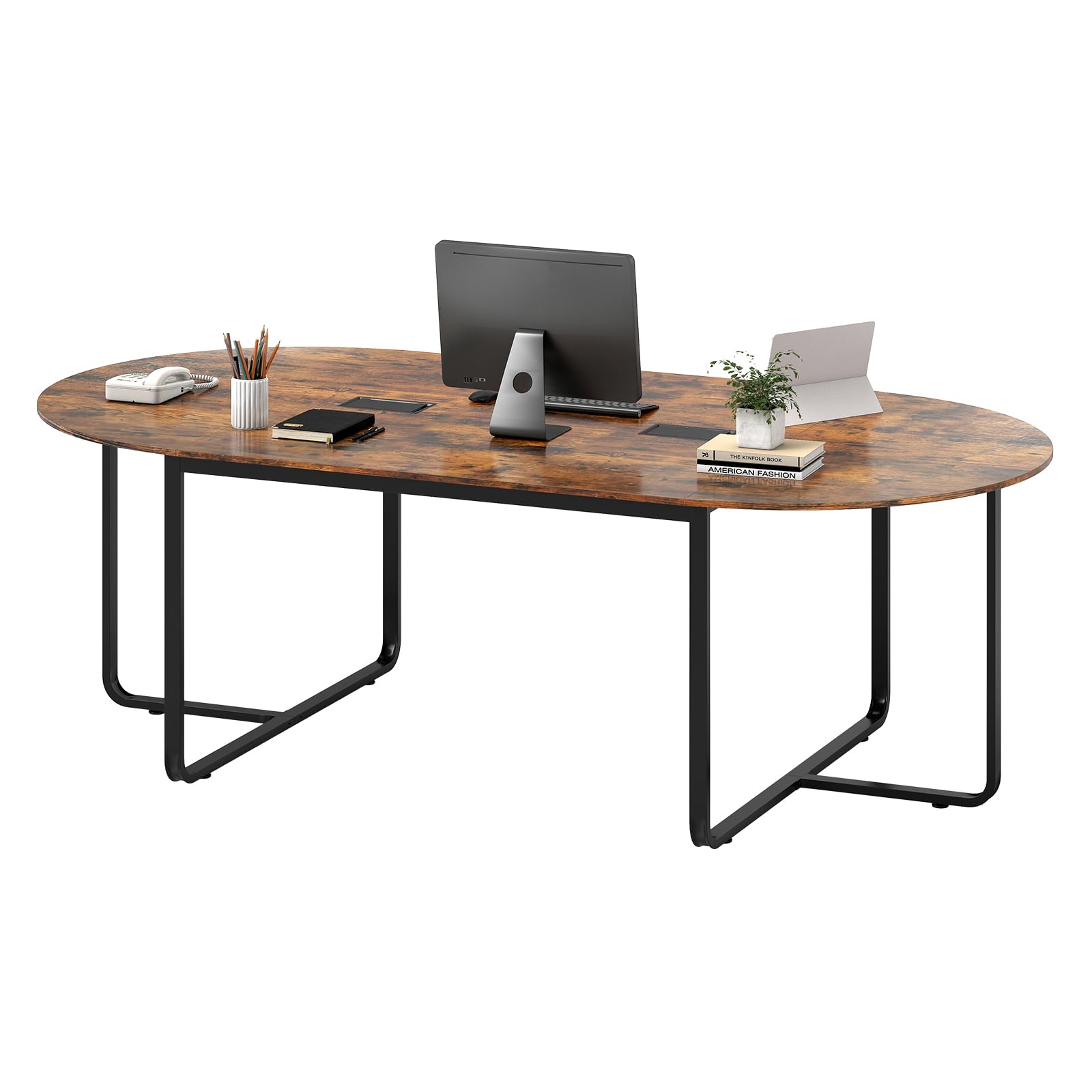 Designed for teamwork, the extra large conference table boasts a spacious 240.5L x 120cmW tabletop that accommodates up to 12 people. Supported by a sturdy metal frame with T-shaped legs, the meeting table can hold up to 120kg and features adjustable foot pads for stability on any surface. Thus, you can enjoy a secure and stable workspace. Efficient cable management is ensured with 2 cable holes. The training table’s industrial oval design promotes interaction, creating a collaborative space for meetings and discussions. Versatile and adaptable, this 240.5 x 120 x 76.5 cm (L x W x H)conference table is perfect for hosting brainstorming sessions, training workshops, or formal meetings in any professional setting.