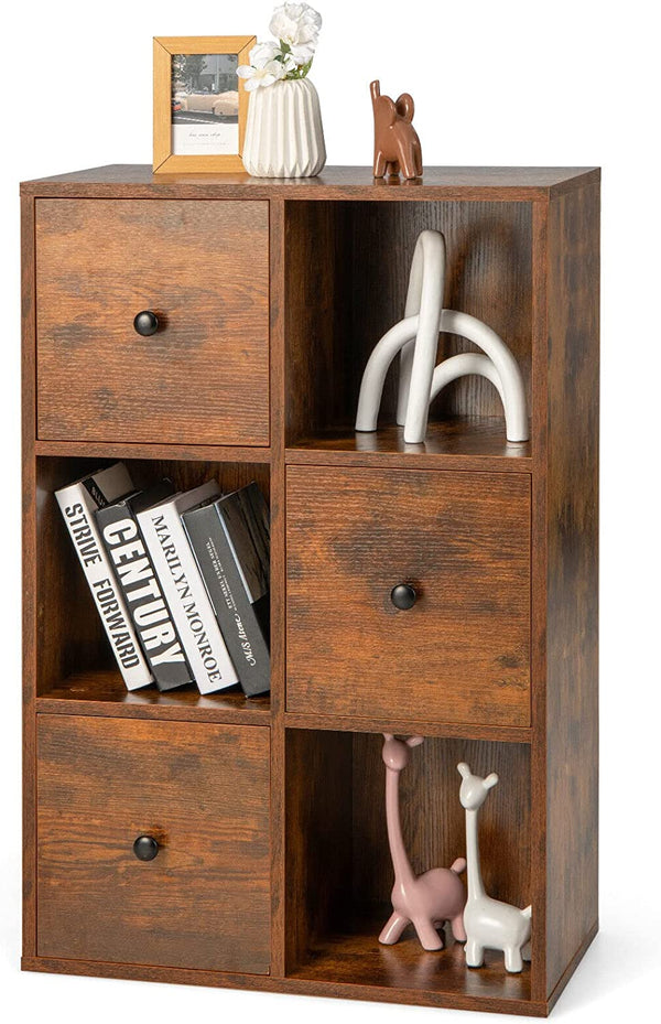 Giantex 3-Tier Bookshelf with 3 Cubes & 3 Drawers, Storage Organizer with Anti-toppling Device
