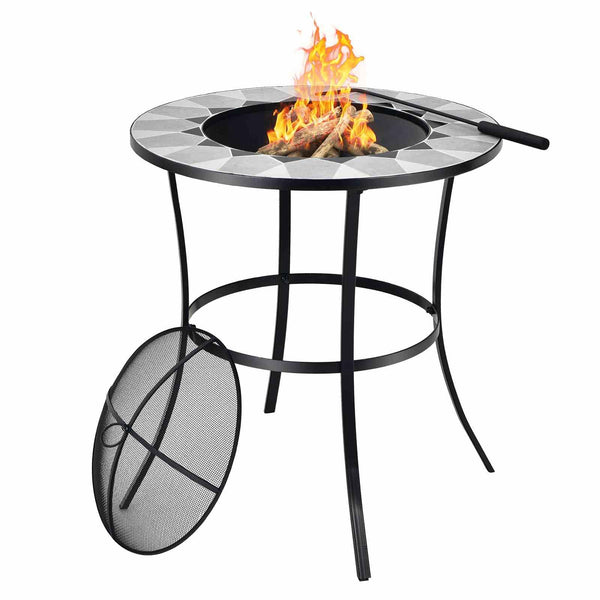 Outdoor Round Fire Pit Table with Mesh Screen Lid and Fire Poker