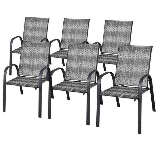 Set of 6 Outdoor PE Wicker Stackable Chairs for Garden & Yard & Deck & Lawn