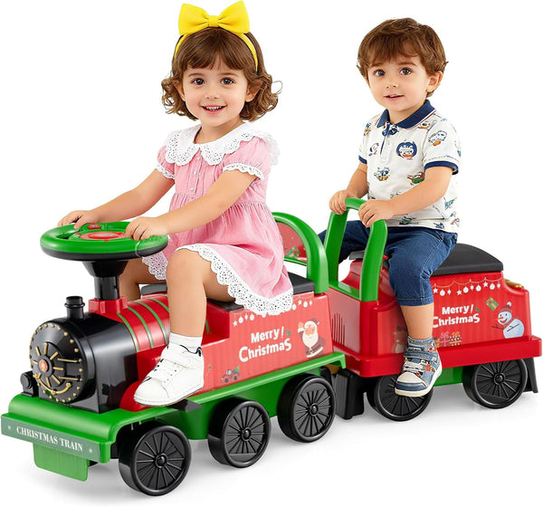 Ride on Train with Carriage, 6V 2-Seater Battery Powered Ride on Toy with Under-Seat Storage