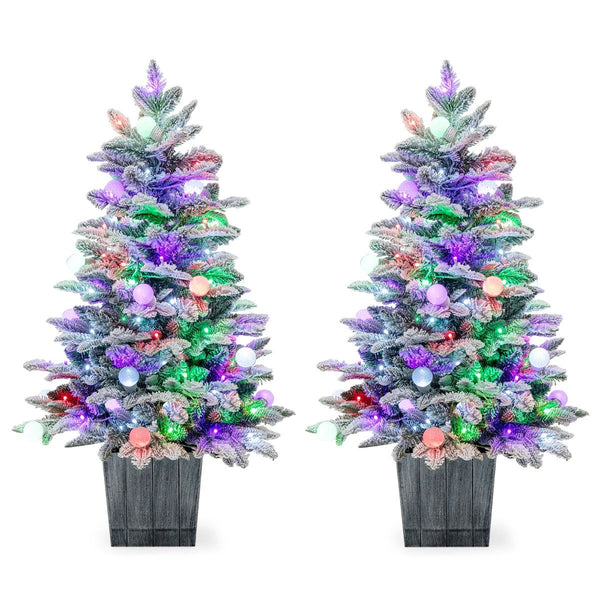 110CM Pre-Lit Snow Flocked Christmas Tree Potted Xmas Decor w/Globe Lights Home