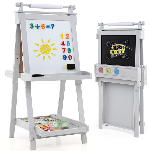 3-in-1 Double-sided Art Easel with Chalkboard & Magnetic Whiteboard