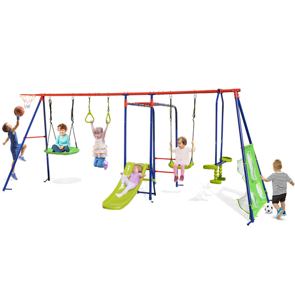 7-in-1 Outdoor Swing Set with Ground Stakes for Garden/Backyard/Park