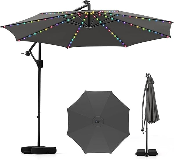 3m Solar Offset Hanging Umbrella with Base, Patio Cantilever Umbrella