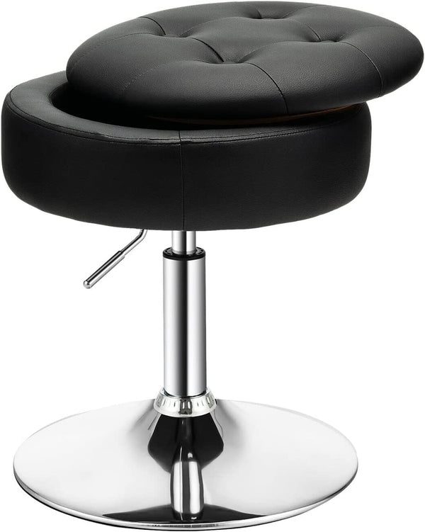 Giantex Vanity Stool with Storage, 360° Swivel PU Leather Vanity Chair, 50-66cm Height Adjustable Makeup Stool