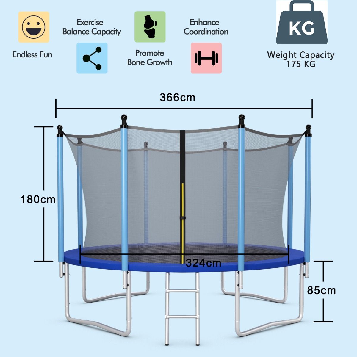 10/12/14 FT Outdoor Trampoline with Enclosure Net and Ladder