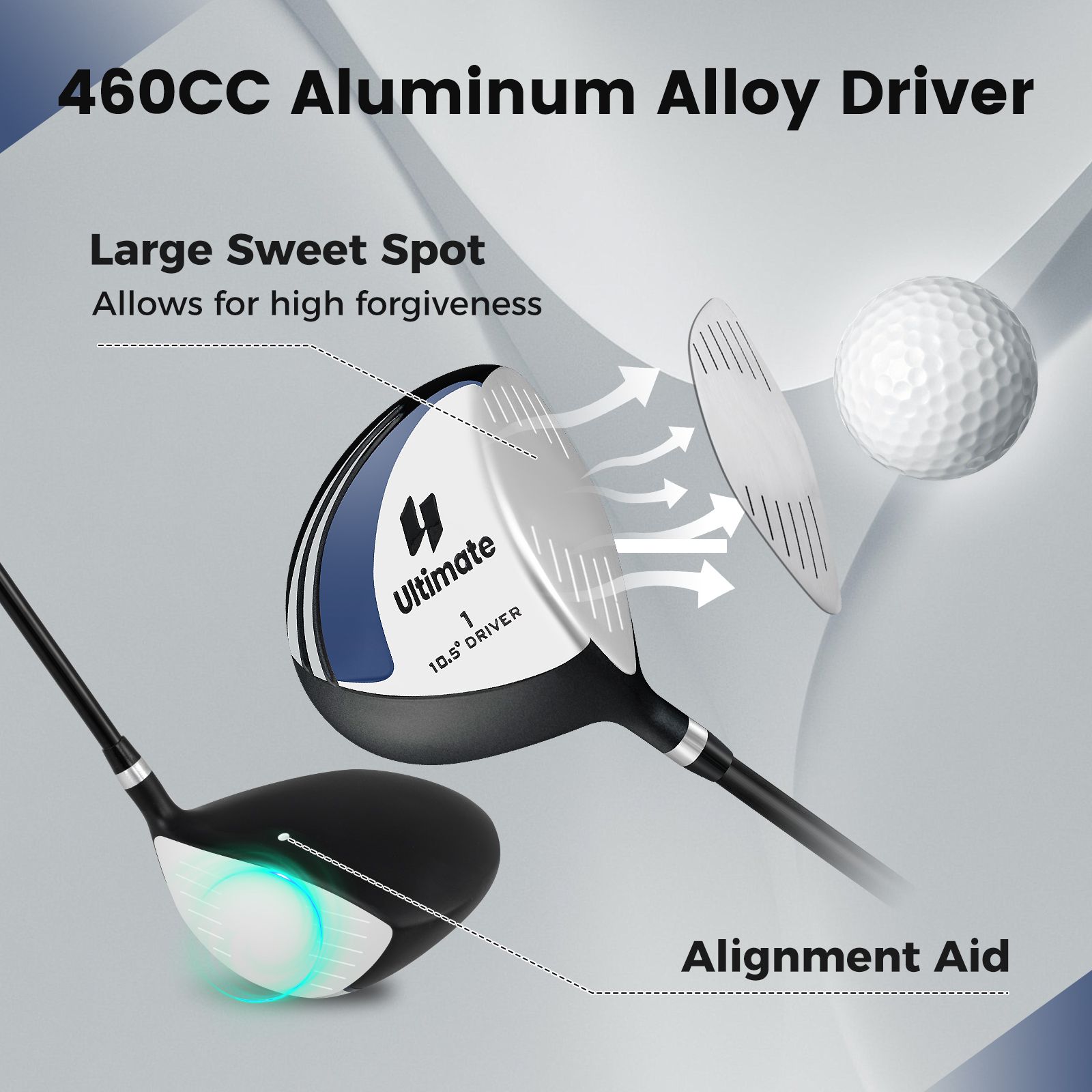 460CC Aluminum Alloy Driver: This men's/women's golf driver is designed with a maximum legal size 460CC aluminum alloy club head. The generous head size provides an extensive surface area, greatly reducing the chance of miss-hits.