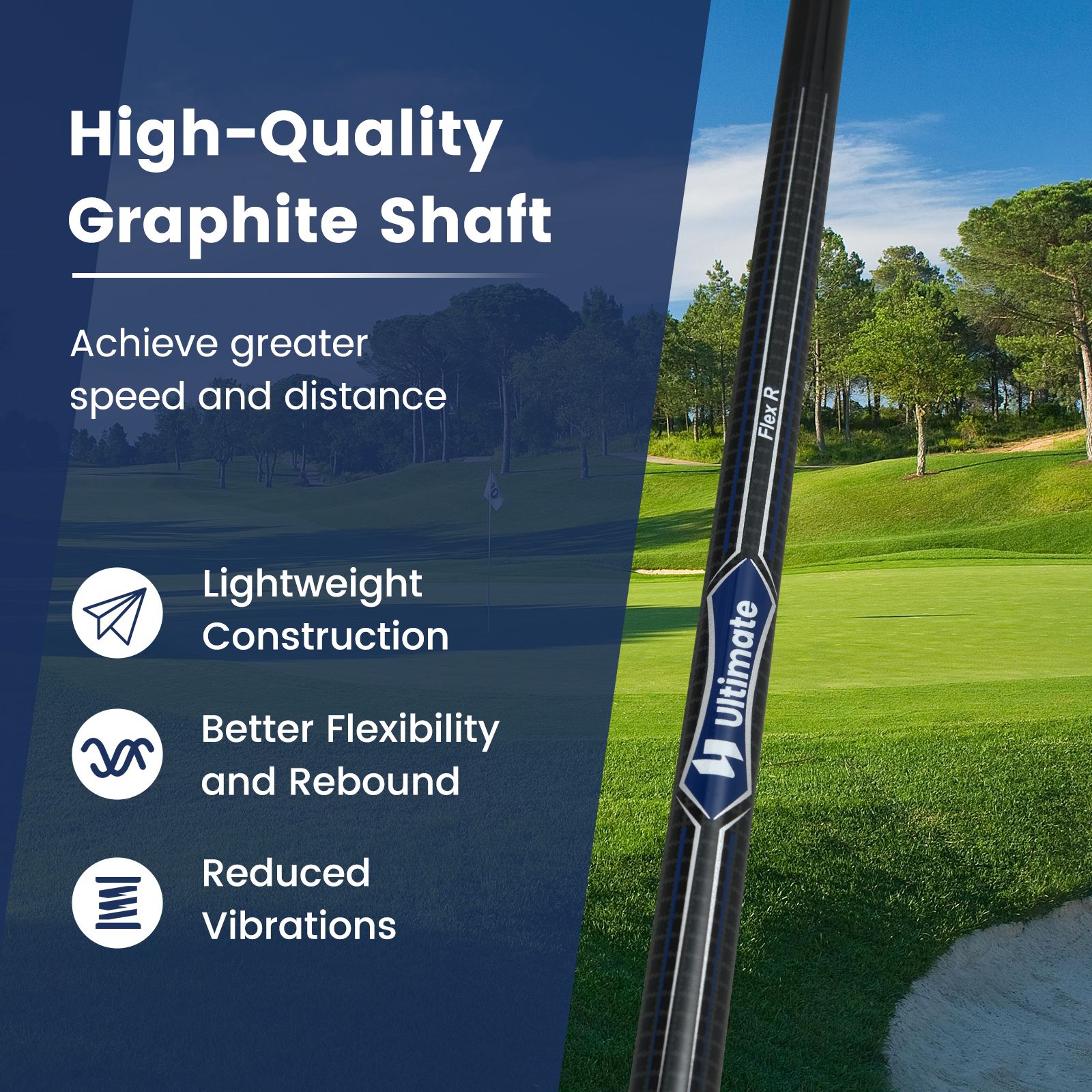 Premium Graphite Shaft: Lighter than traditional steel shafts, the graphite shaft offers increased swing speed and distance while providing reduced vibrations for improved feel and feedback on impact.