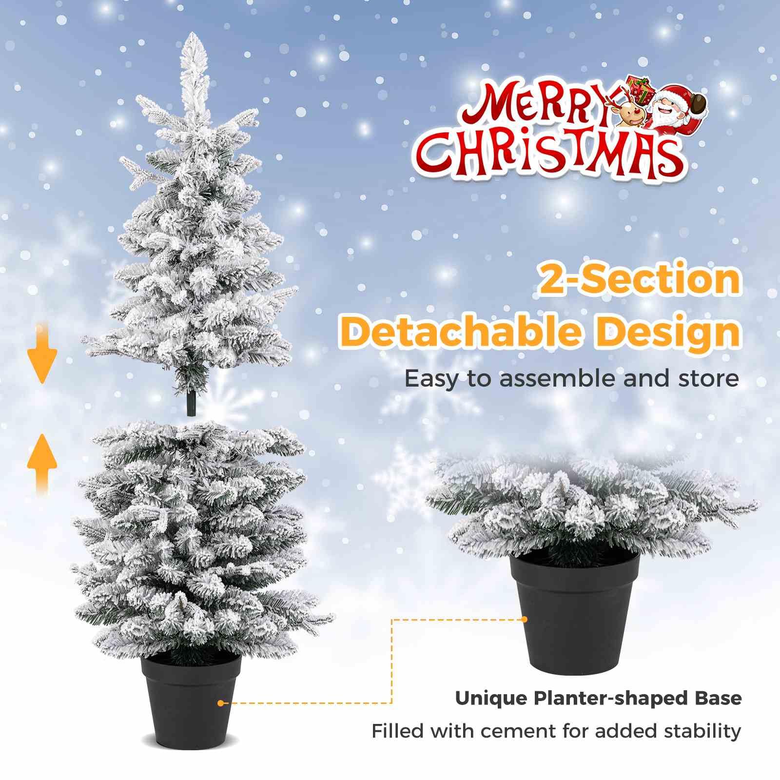 Stability and Easy Assembly: The light-up Christmas tree comes with a sturdy planter filled with cement for added stability, ensuring that your tree stands tall and proud throughout the holiday season. Moreover, the 2-section removable trunks ensures quick assembly and storage.