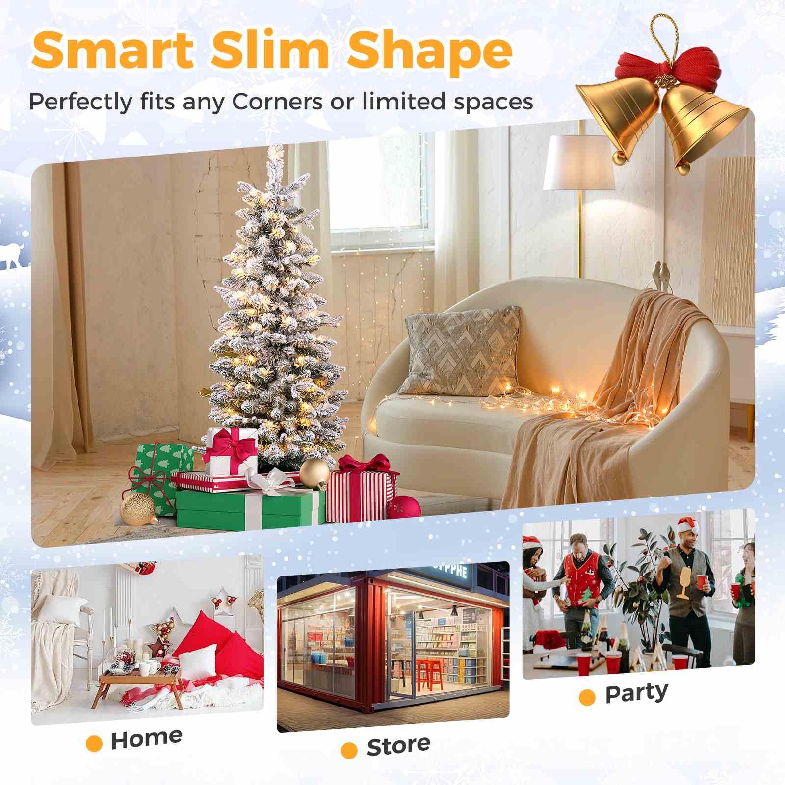 Space-saving Slim Shape: Featuring smart slim shape, the lighted seasonal decoration tree can perfectly fit in any corner or limited space, making it ideal for apartments, offices, door ways, stores and living rooms.