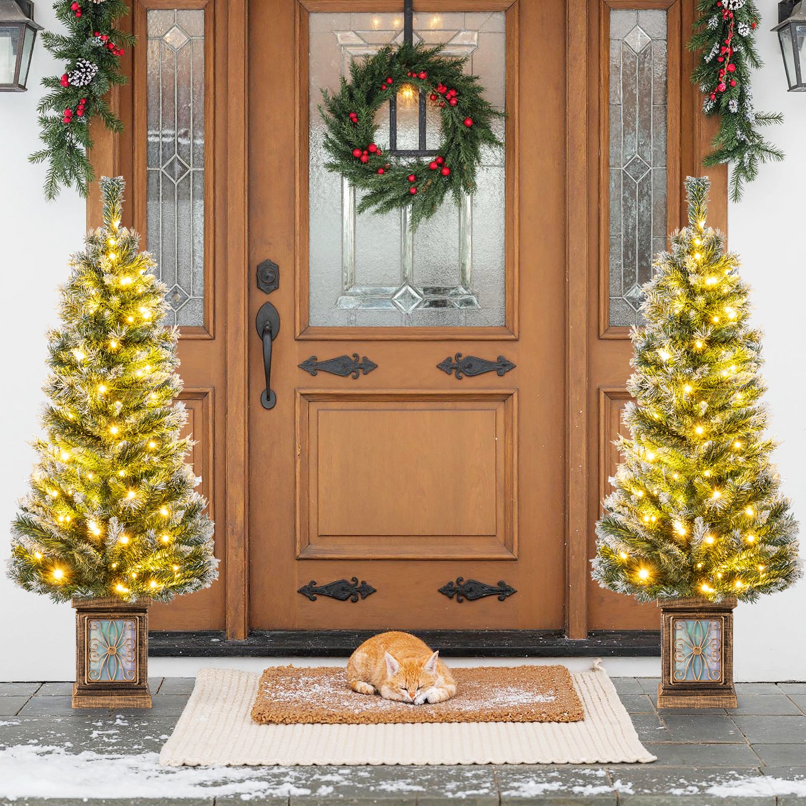 Featuring 180 snowy branch tips and 80 LED lights, the realistic Xmas tree brings wintry charm and joy indoors. Plus, the pre-lit Christmas tree offers 11 lighting modes, 2 lighting colors and 4 brightness levels, which are easily adjustable via remote or light controller. Additionally, the convenient timer function offers 3 settings (6Hon/18H off, 8H on/16H off, 6H on/6H off, 3H on/9H off), letting you enjoy a hassle-free lighting schedule. Safety is ensured with a SAA approved adaptor, while the combination of PE and PVC materials provides a flame-retardant, non-allergenic option for peace of mind. Completing the look, a flowerpot base with a rustic pattern adds elegance to your seasonal centerpiece. Note: The ornaments are not included.