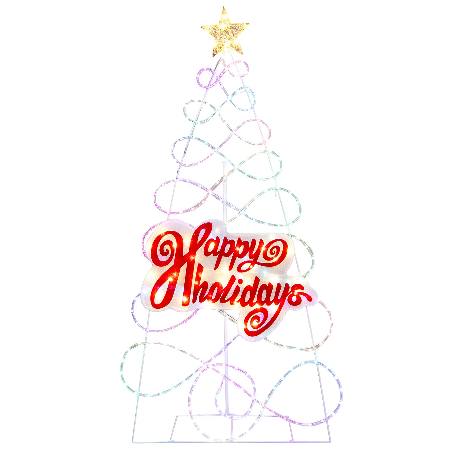 Adorable Christmas Decoration: This holiday decoration mimics the appearance of a real-life Xmas tree to enhance holiday features. Besides, the bright top star and "happy holidays" sign make your home full of festive atmosphere.