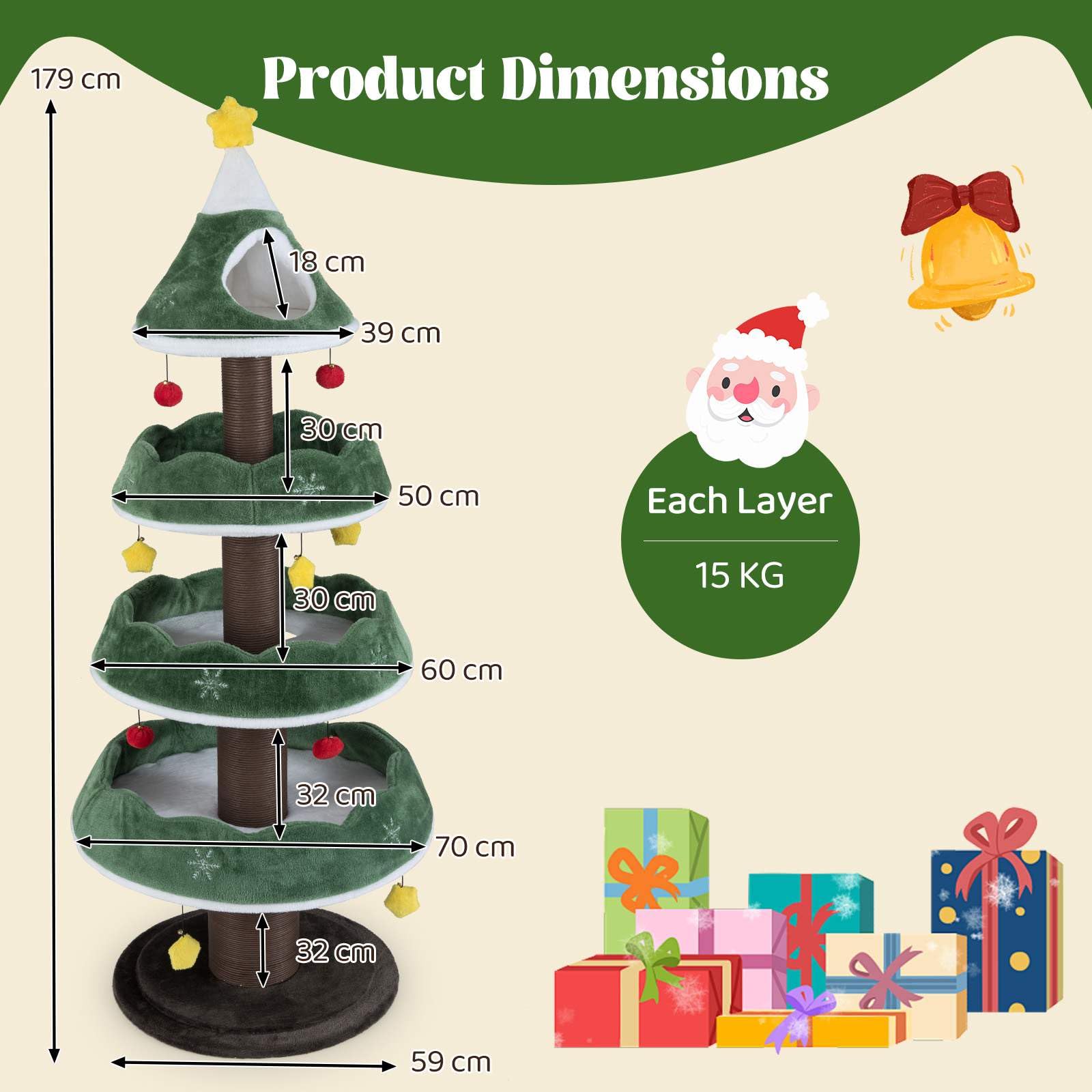 179 CM Tall Christmas Cat Tree, Multi-Level Kitten Tower with 3 Plush Platforms