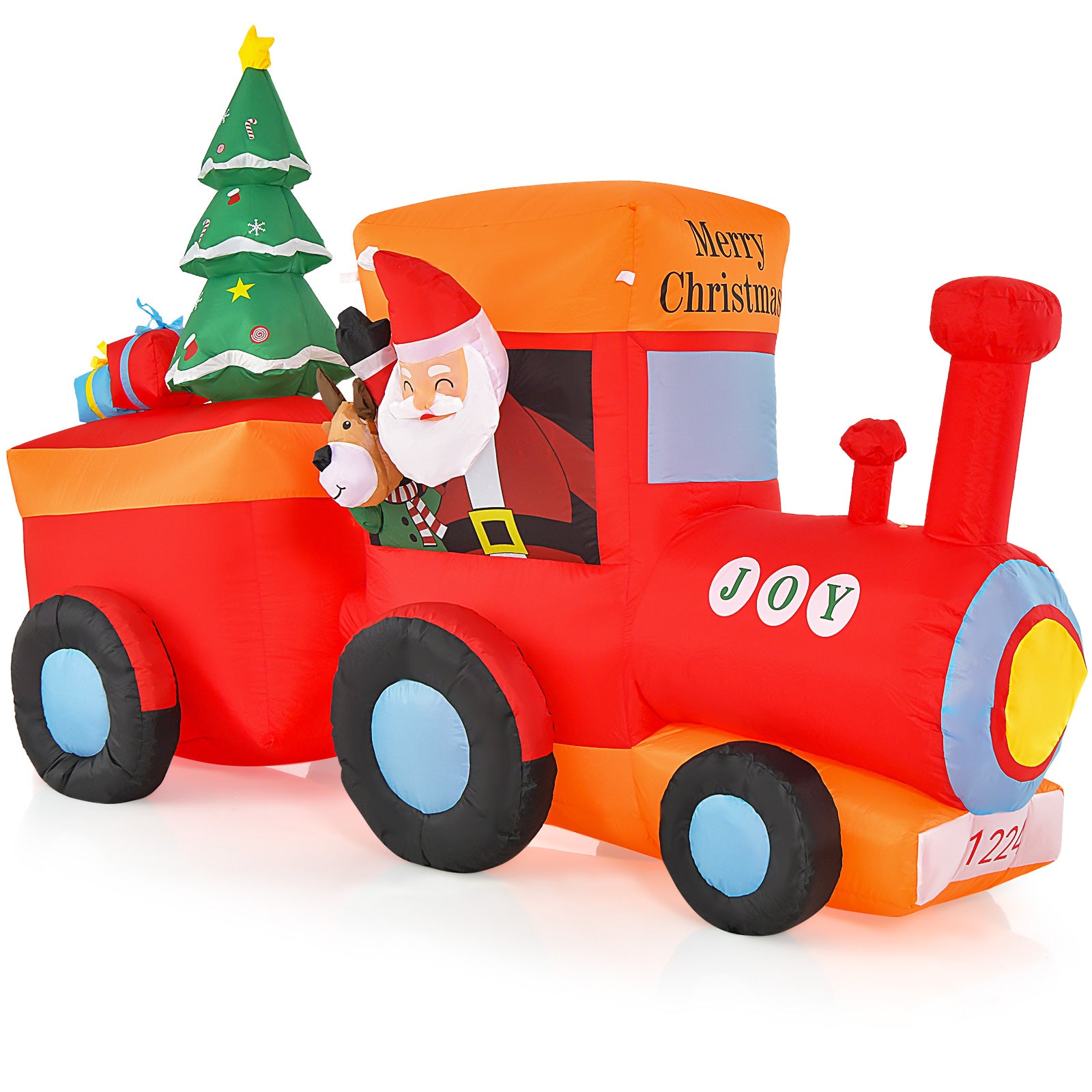 Celebrate Christmas and greet passersby with this colourful inflatable Santa train.