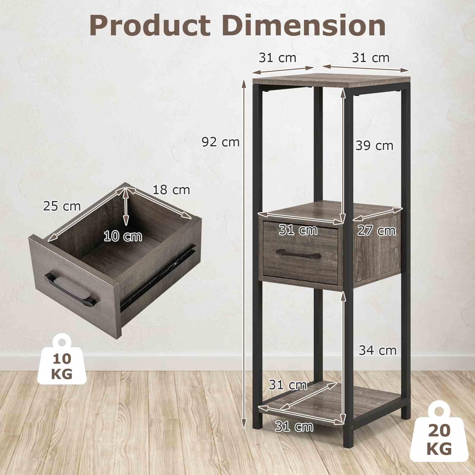 The 3-tier plant stand with 3 open shelves provides a neat way to display your favorite potted plants. And the drawer can keep important tools or collections in place. Therefore, the versatile flower rack is also a display shelf. With 2 anti-tipping devices, you can anchoring the plant stand to wall for increased stability. The powder-coated metal frame combines with non-slip pads, ensuring superior stability without scratching your floor. Featuring simulated wood grain, the space-saving vertical plant table is a smart choice for balcony, living room or apartment.