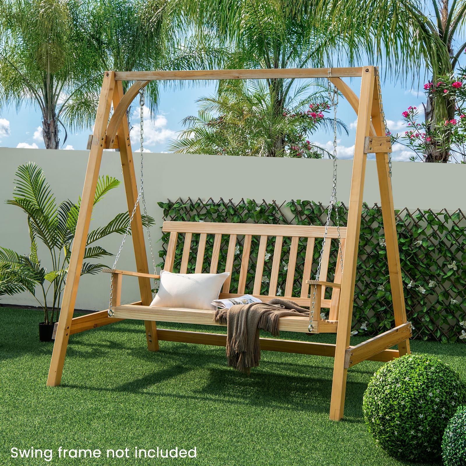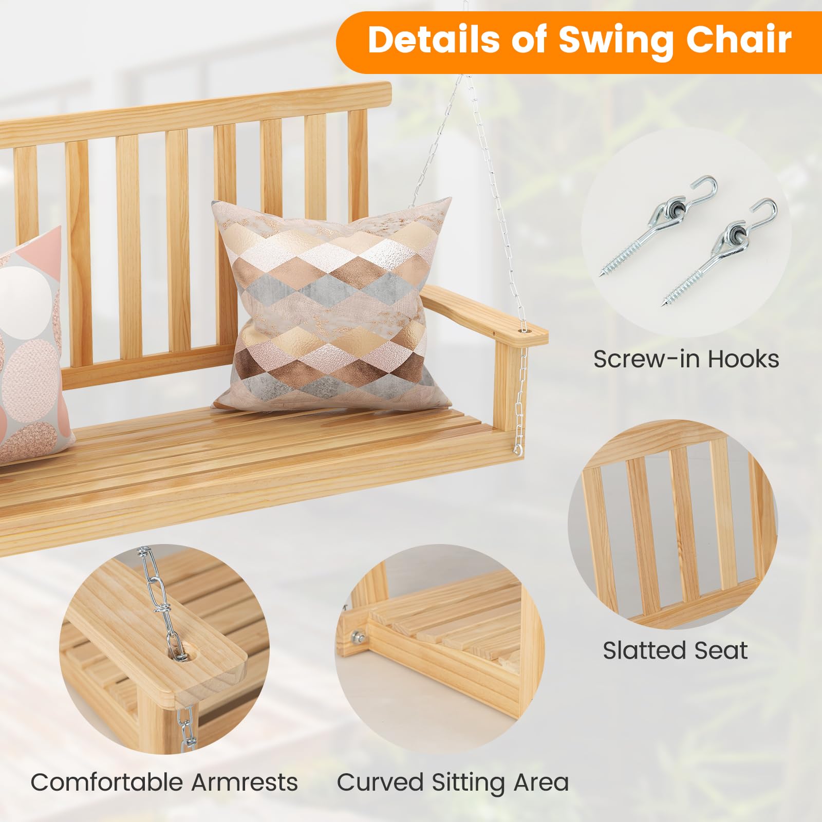 2-Seat Patio Swing Bench, Wood Hanging Porch Swing Chair W/ 2 Sturdy Hanging Ropes