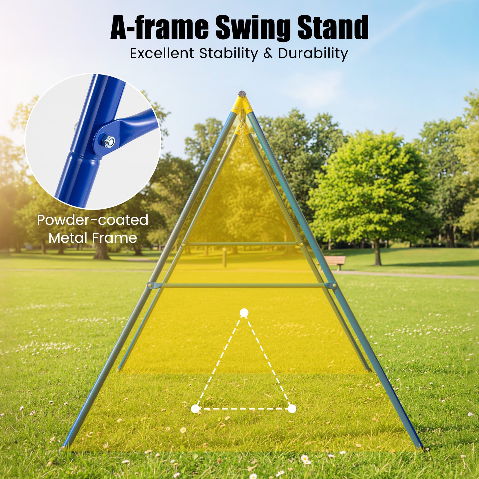 - Sturdy Construction: Made of heavy-duty steel tubing, the swing frame is stronger and more durable. The steel tubes are coated with a high-quality coating that prevents rusting. And the A-shaped construction gives the swing frame a load-bearing capacity of up to 300kg, making the overall structure more stable.