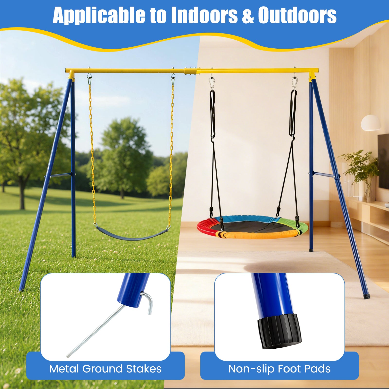 2 Seat Swing Frame for Kids, Children Heavy-Duty Metal Swing Stand w/Ground Stakes