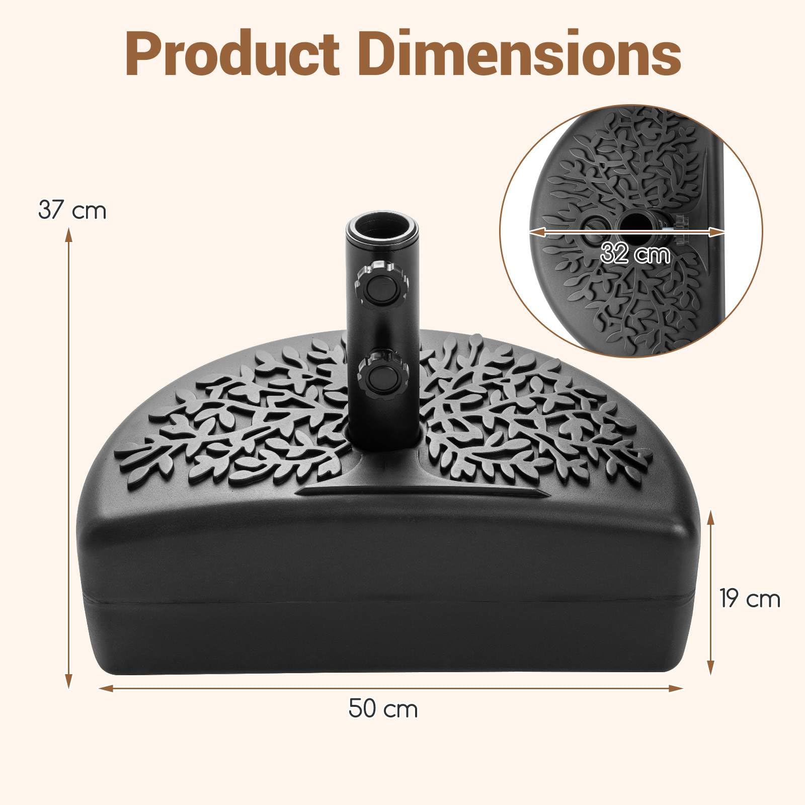 25kgHalf Round Patio Umbrella Base,Water&Sand Fillable Heavy Duty Patio Umbrella Stand