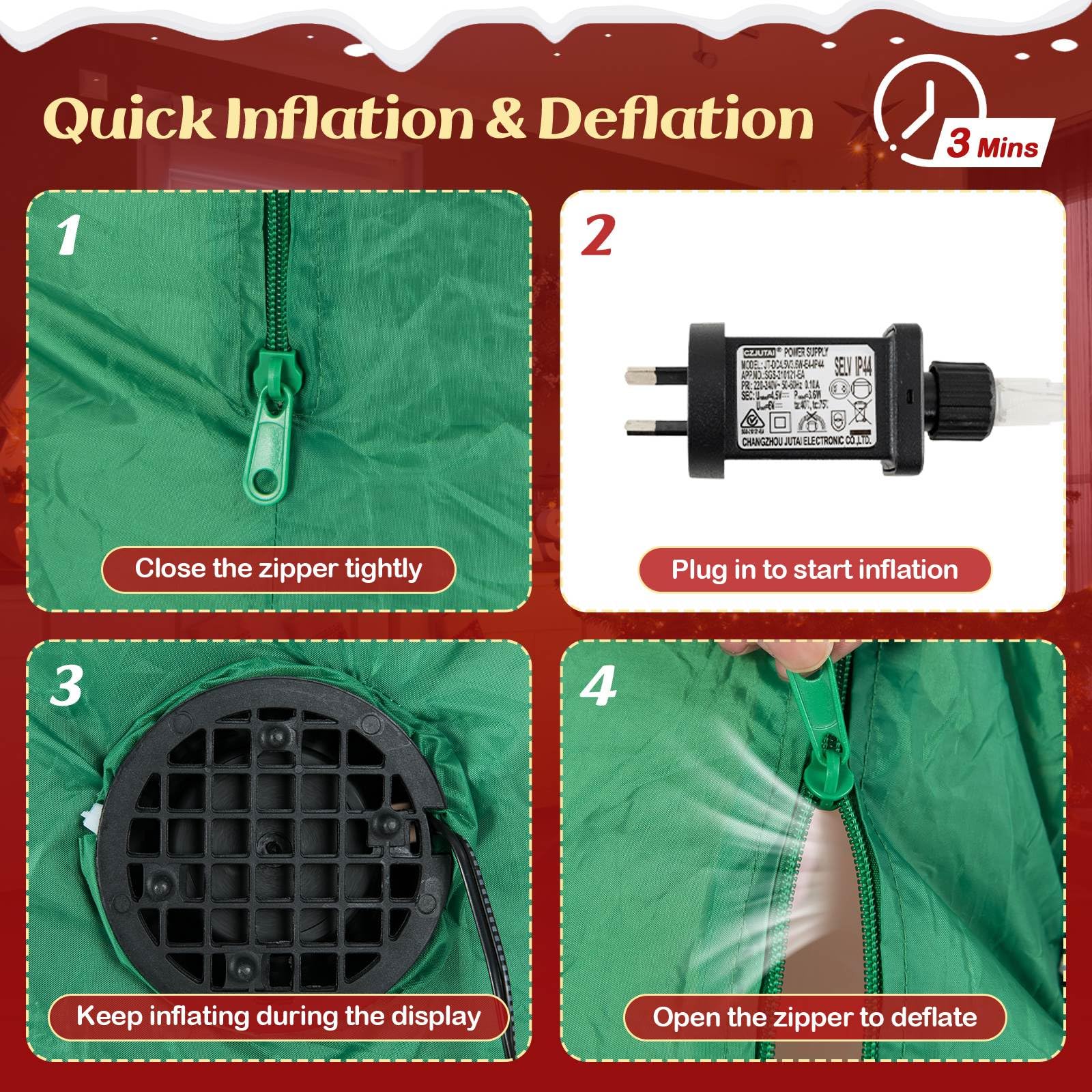 Quick Inflation and Deflation: The built-in air blower inflates the entire train in about 3 minutes, while included windproof ropes, ground stakes, and water bags provide superior stability, keeping your festive display secure in place.
