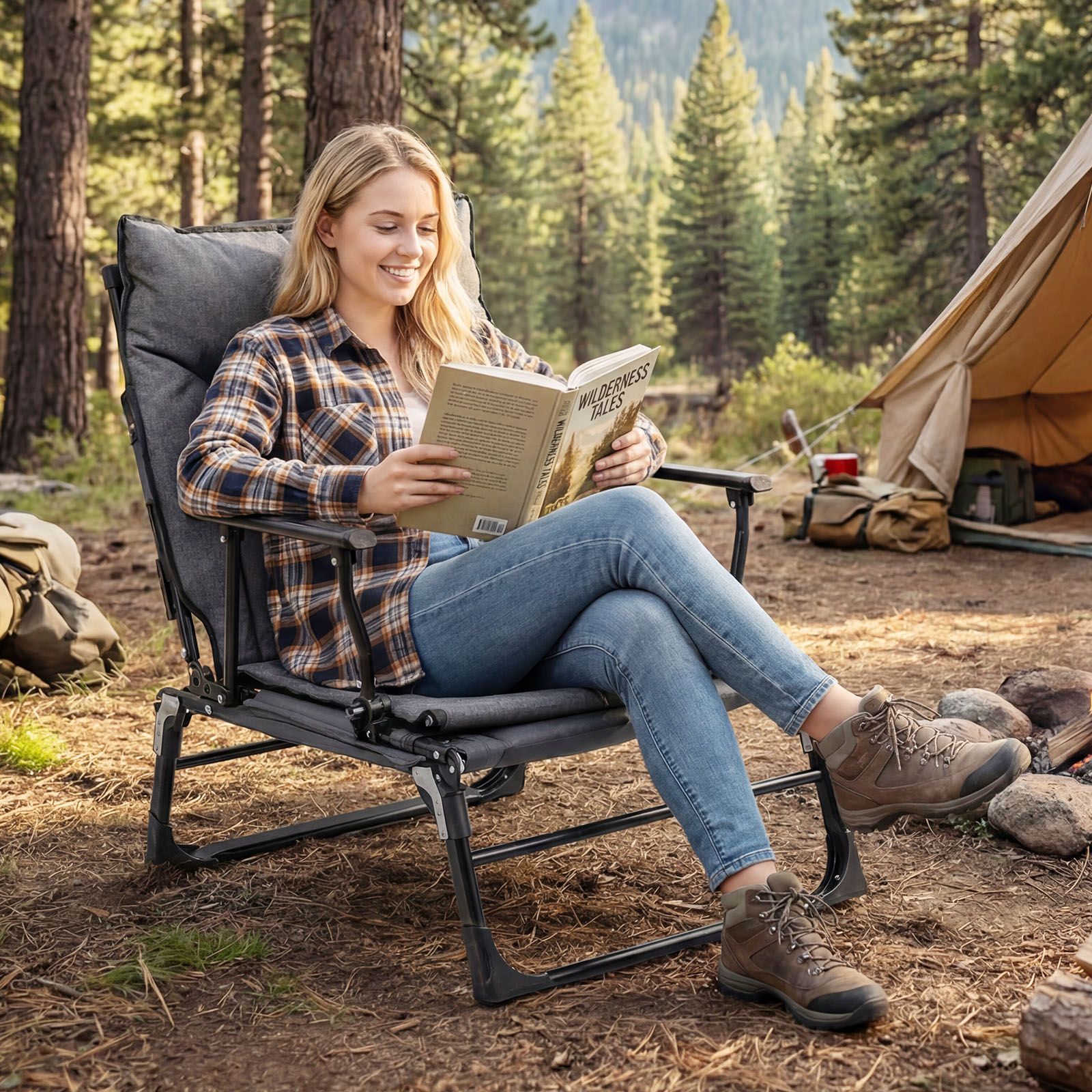 3 in 1 Multifunctional Design: This convertible camping cot offers unmatched versatility as a comfy sofa chair, chaise lounge, and single bed. Whether camping outdoors or relaxing indoors, it adapts effortlessly to your comfort needs.