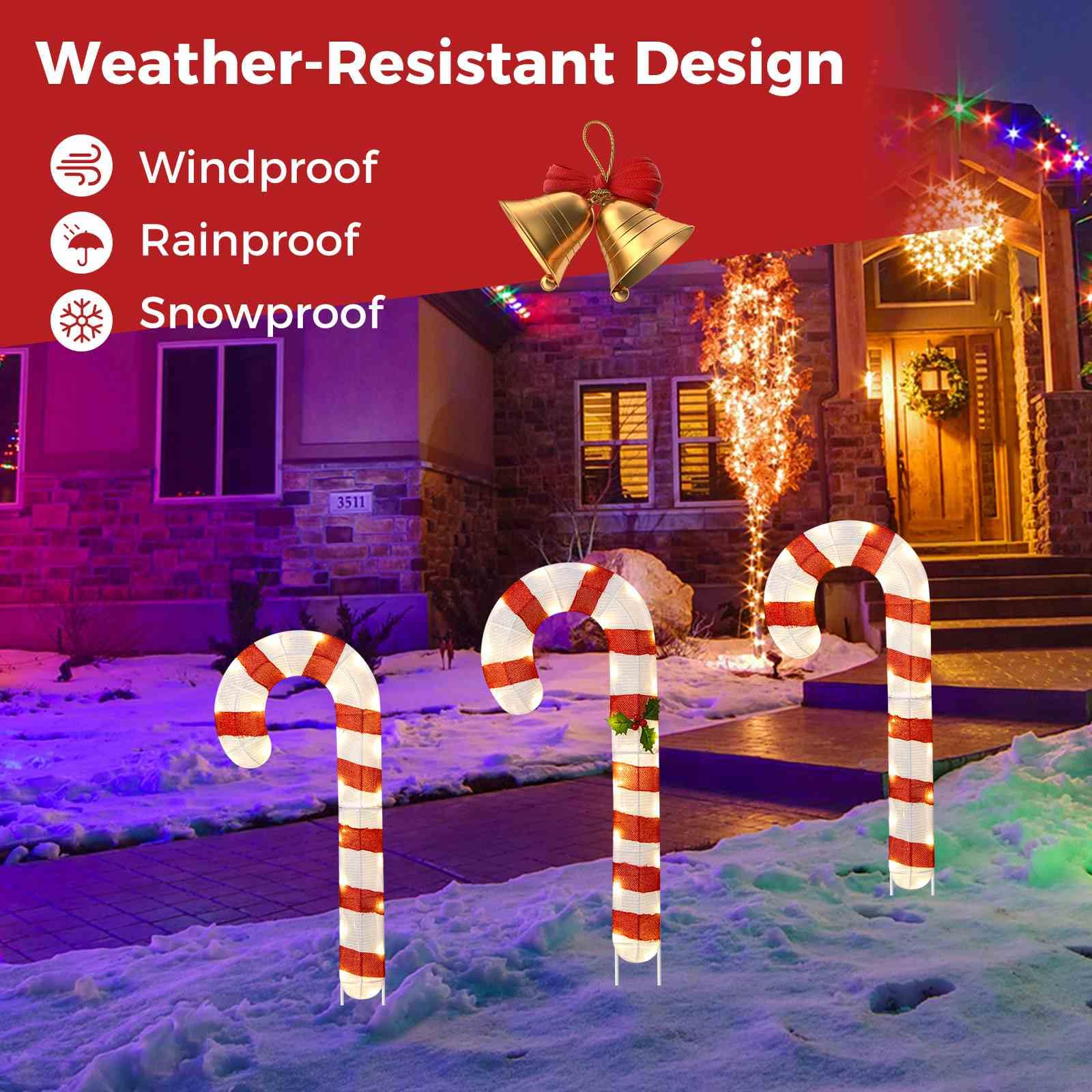 Weatherproof Design: Crafted to withstand the test of time, these candy cane decorations are windproof, rainproof, and snowproof. The all-weather construction ensures they remain a charming addition to your house.