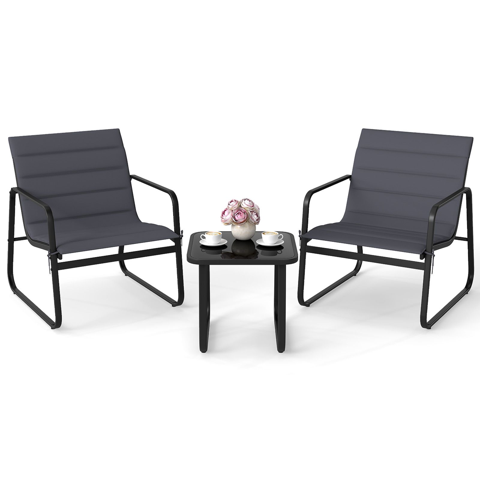 3 Pieces Bistro Set with Detachable Cushions and Sturdy Metal Legs