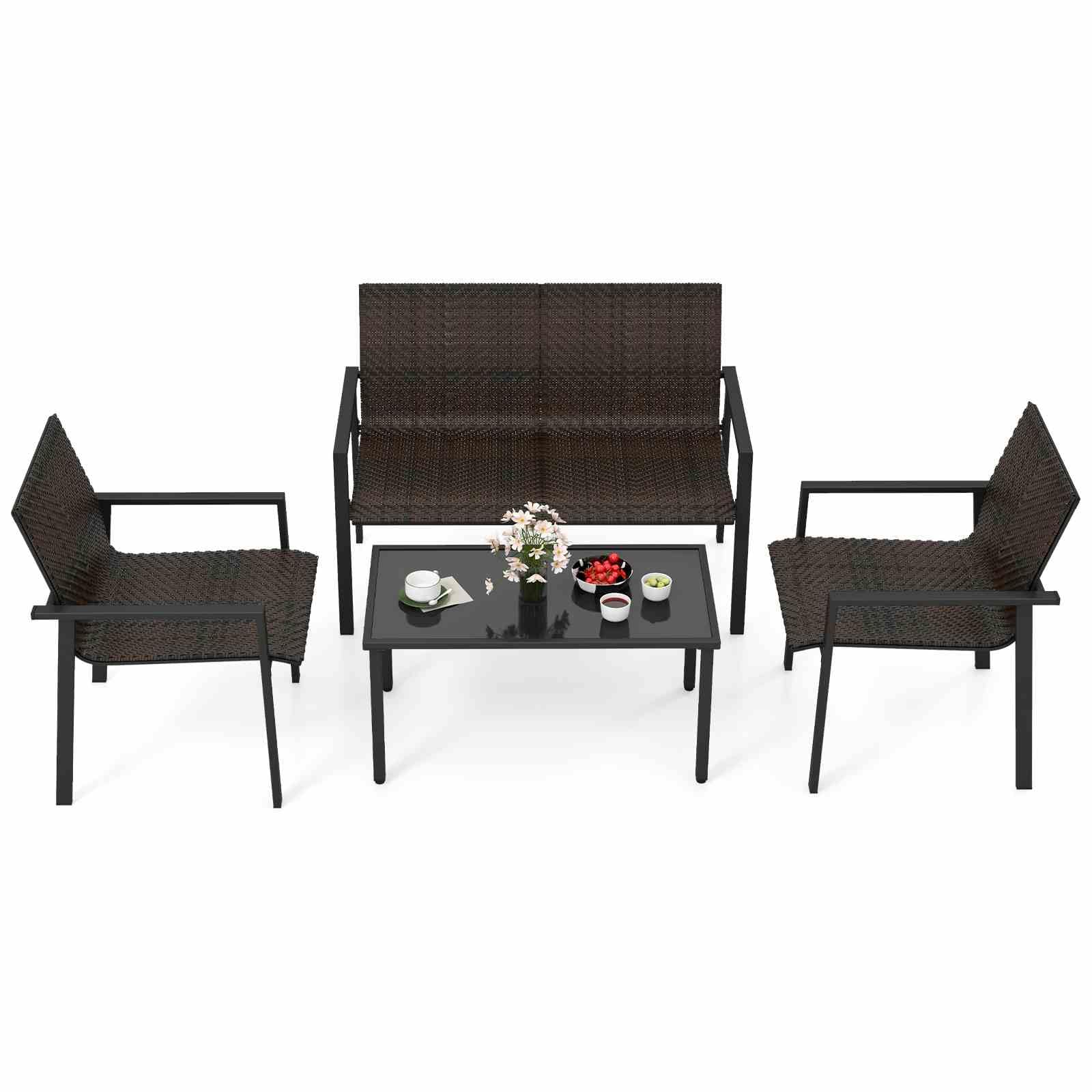 4 Pieces Patio Furniture Set for Small Space Balcony Poolside