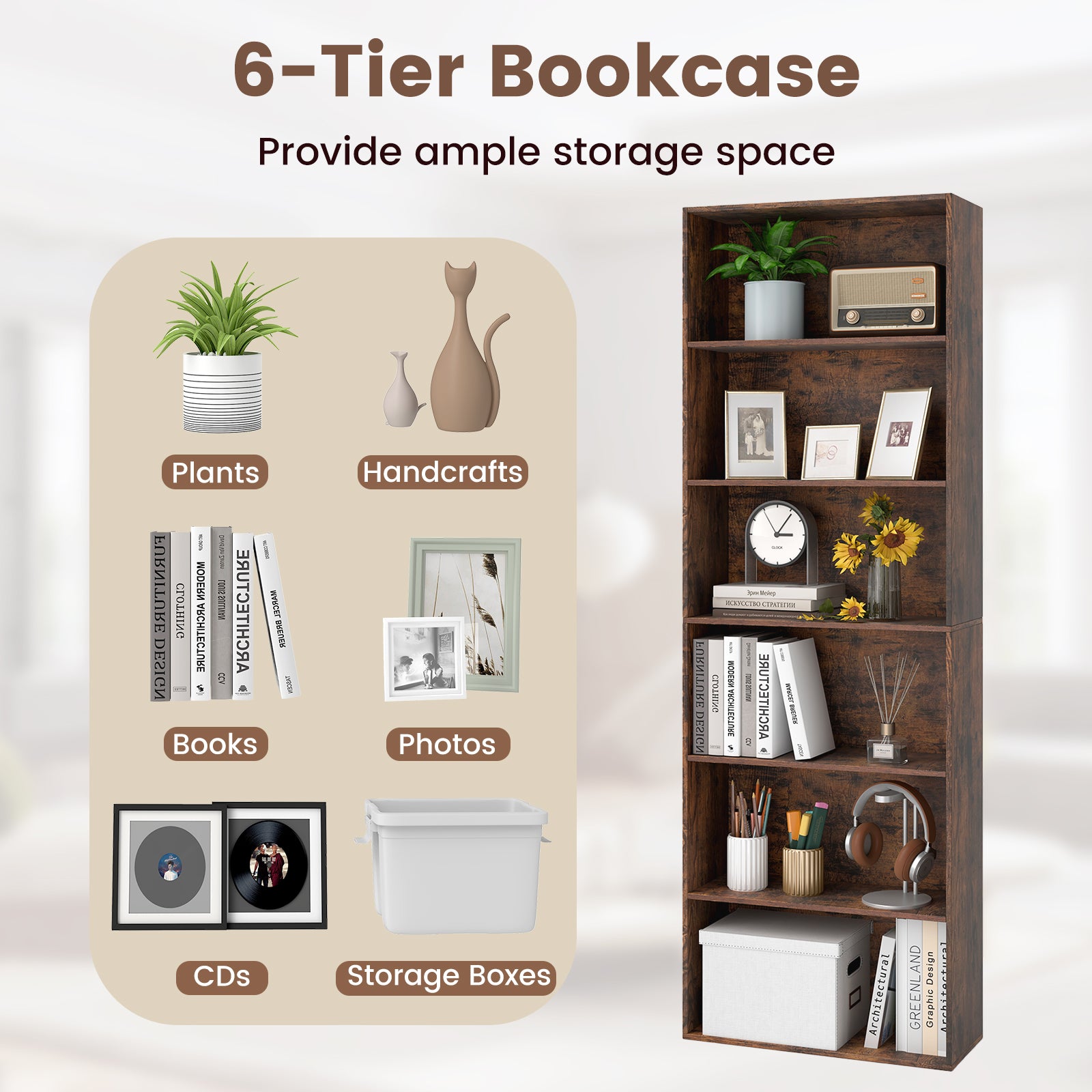 6-Tier Open Bookcase, 178 cm Tall Floor Standing Book Storage Organizer