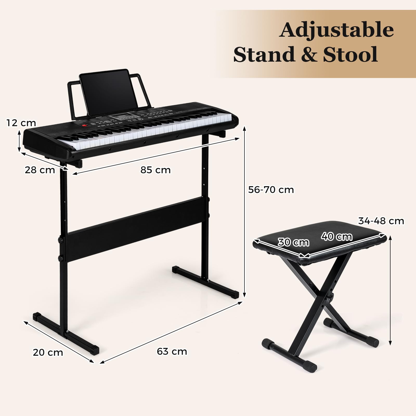 61 Keys Beginners Piano Keyboard, Electric Keyboard Kit with Adjustable Stand & Stool