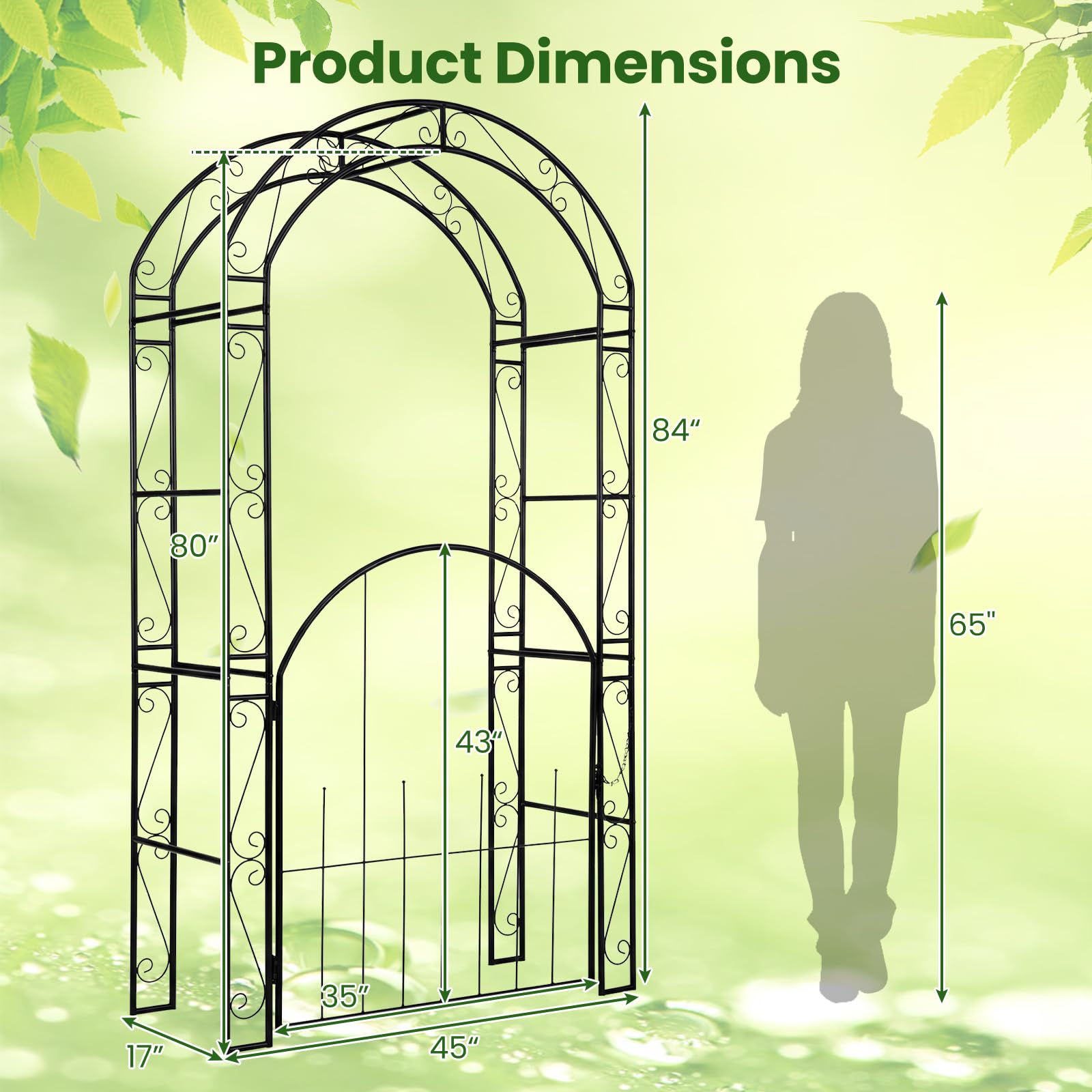 84'' Garden Arbor with Gate, Heavy-Duty Metal Arch Trellis for Climbing Plants Vines Roses