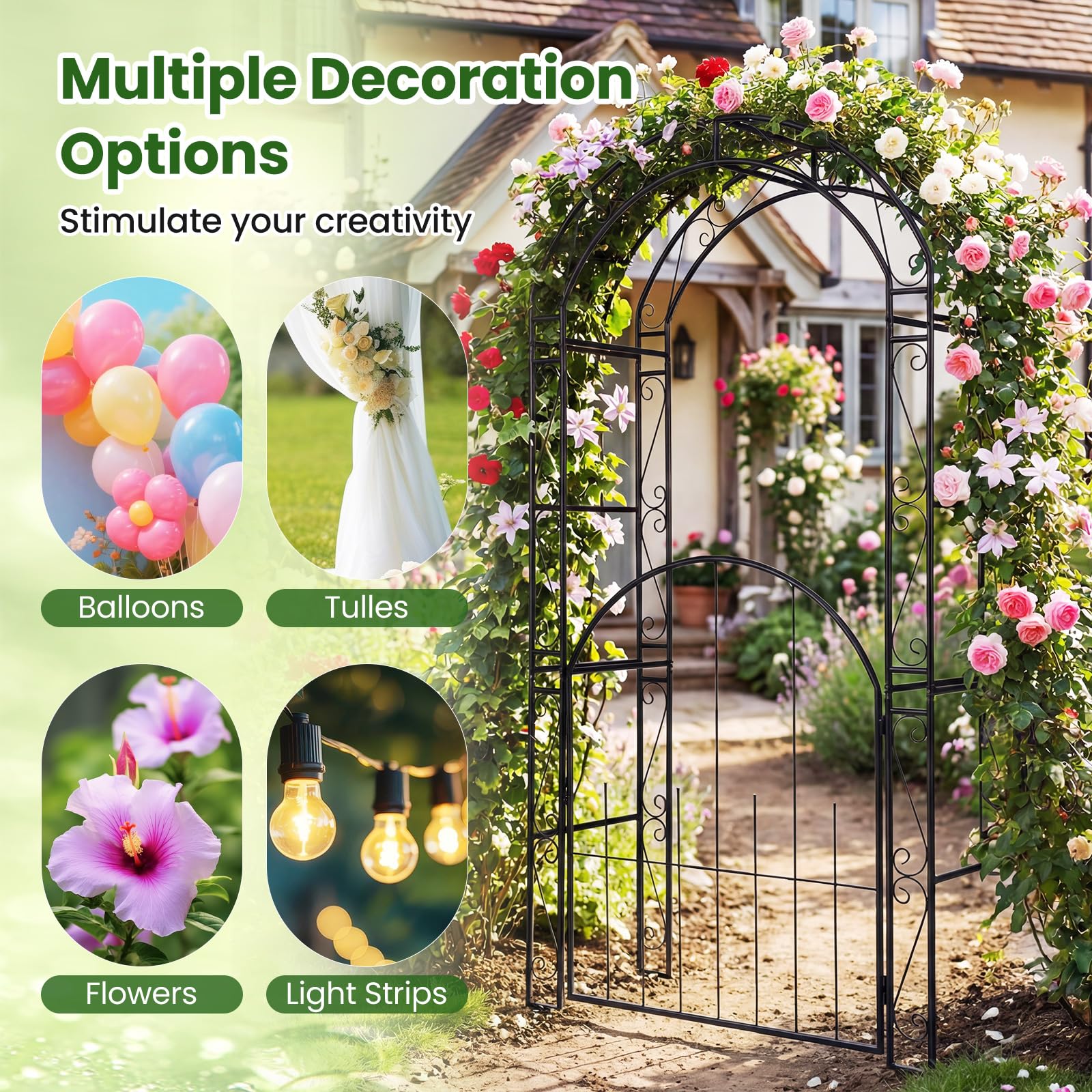 Functions as a wedding arch, garden gate, or patio entrance