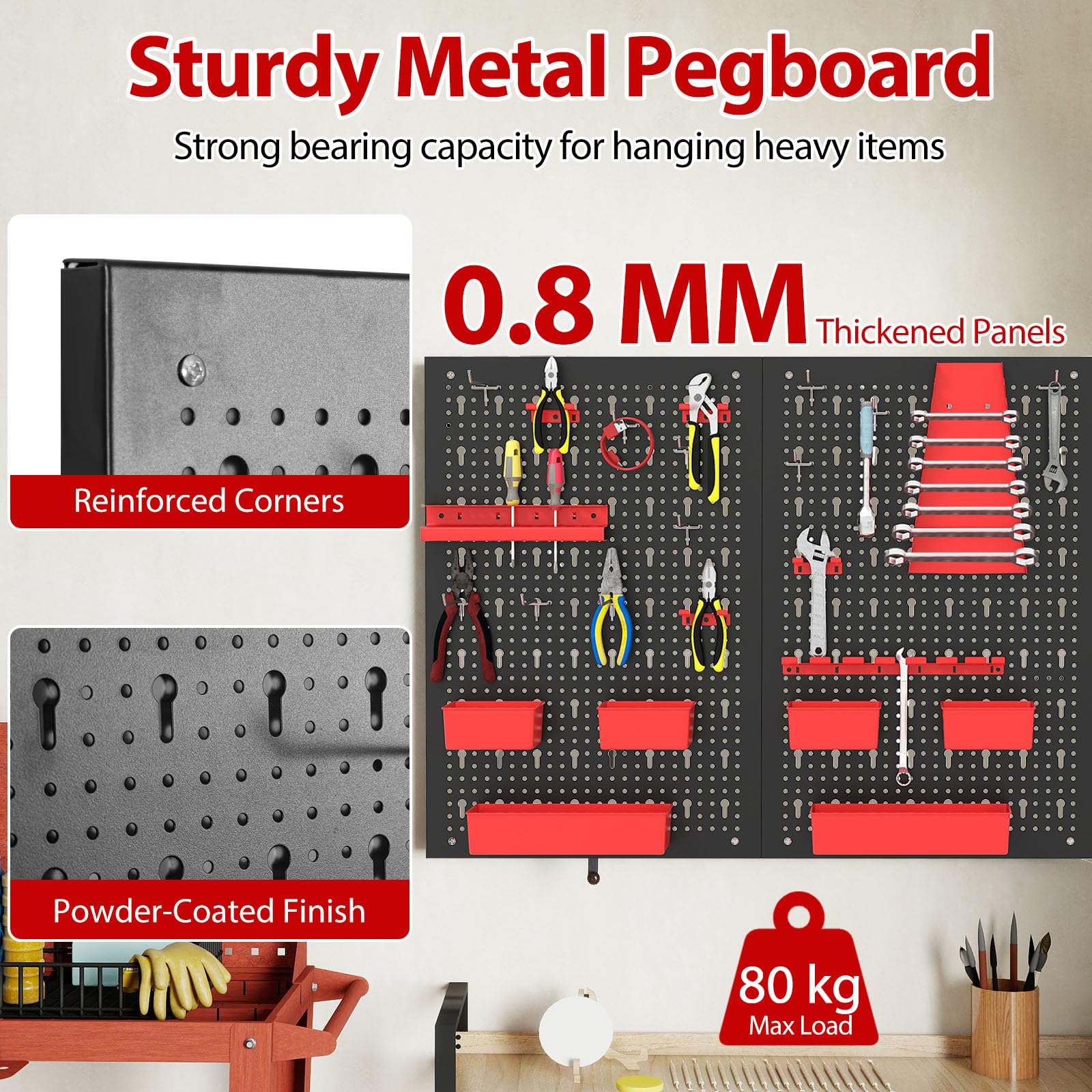 Well-Selected Material: The 9 storage bins of this utility tool kit are made of premium PP with no bad smells. The 3 pegboards and other accessories are constructed of heavy-duty metal which is plastic-sprayed for long-lasting use.