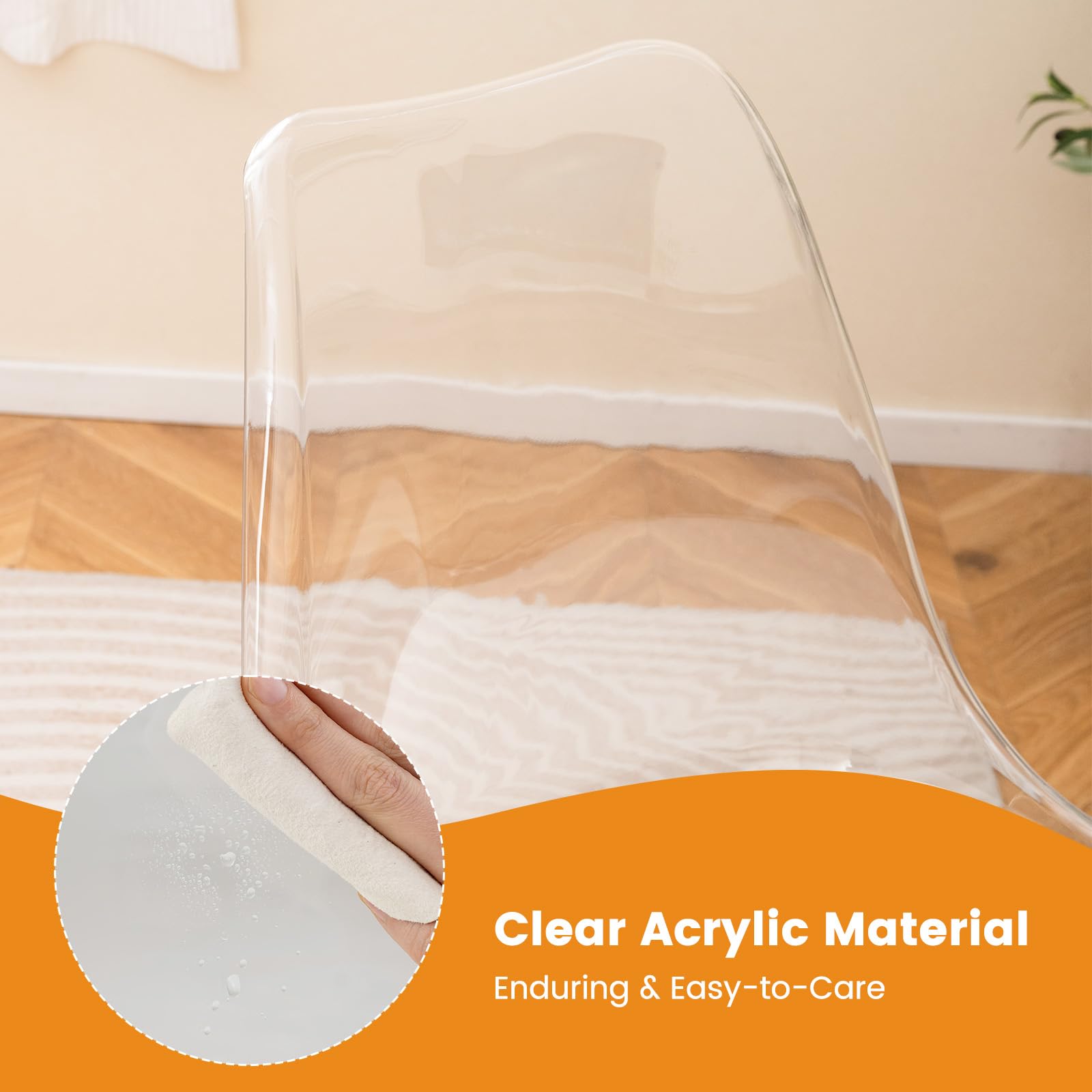 Chic Clear Seat: Crafted from high-quality PET material, this office chair boasts a super-tough build and a smooth surface that wipes clean in seconds. Rounded corners and edges mean no more scratches or dents, keeping your chair looking pristine for years to come!