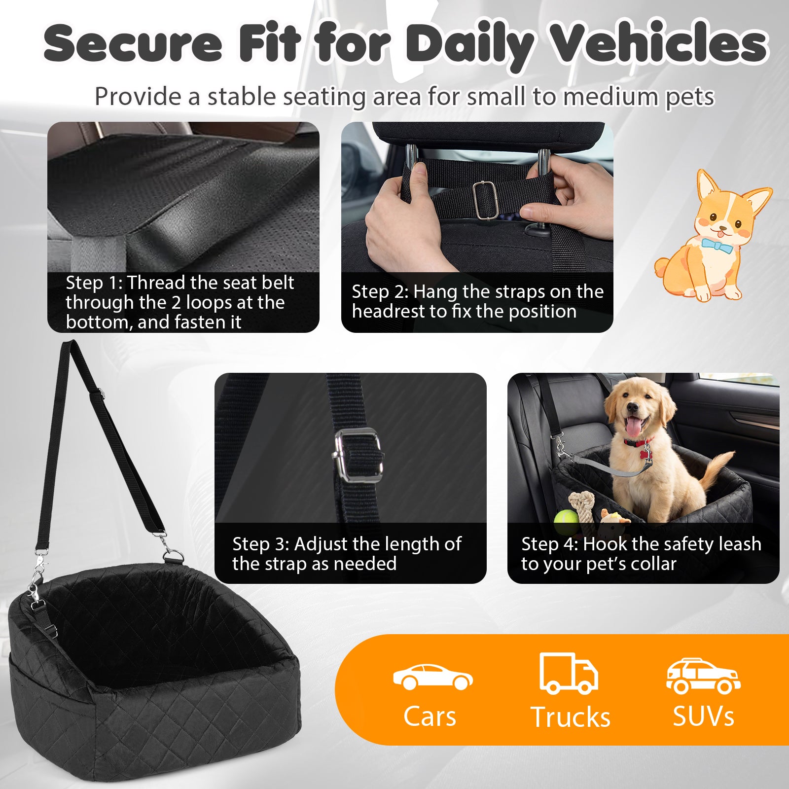Secure Fit for Daily Vehicles: Designed to suit most cars, trucks, and SUVs, this dog booster seat provides a stable seating area for small to medium pets. It can be placed on either the front or back seat, offering flexible installation options to match different driving needs.