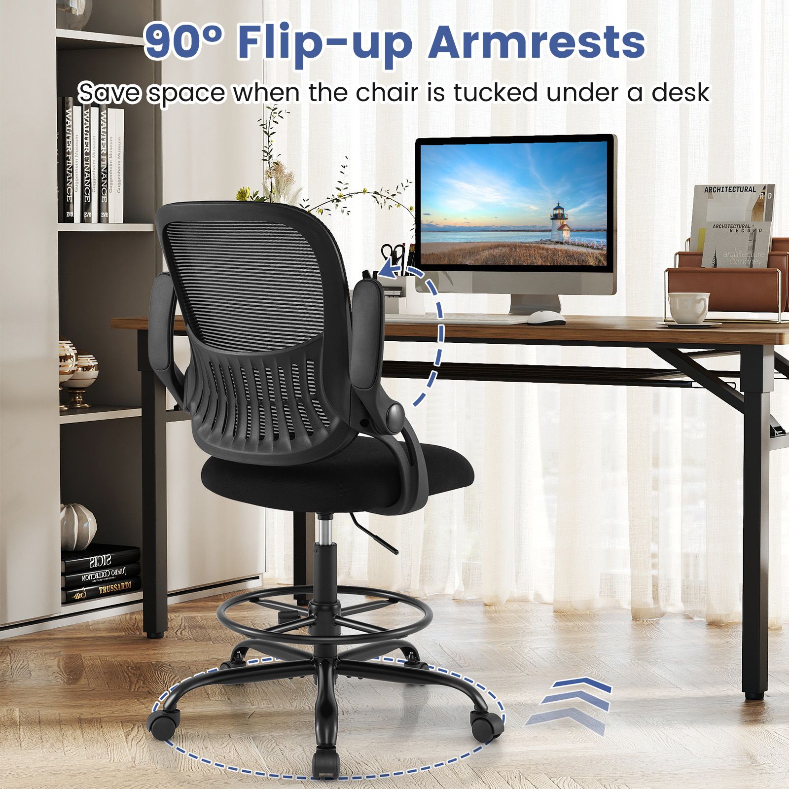 Drafting Chair with Flip Up Armrests and Adjustable Footrest Ring