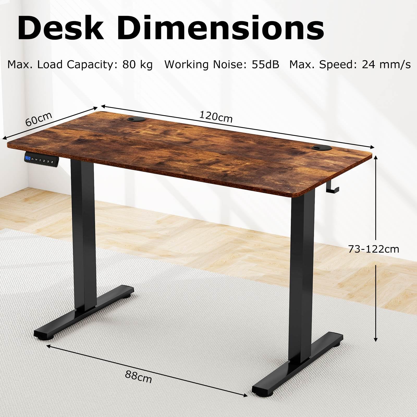 Desk Dimensions: 120 x 60 x 73-122 cm (L x W x H)