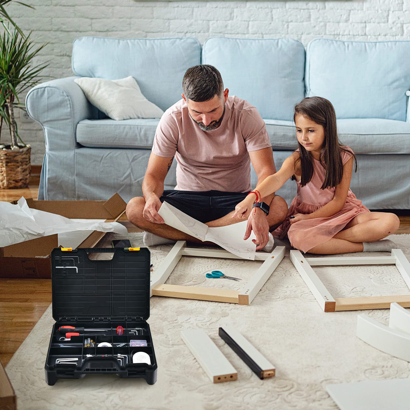 Our multifunctional and useful stool will save you a lot of hassle in using tools on a daily basis! Combing the toolbox with step ladder, this folding step stool require simple steps to use, simply press the button and extend four supporting legs from the bottom, then the foot stool is ready to use as a bench or a tiptoe ladder. Furthermore, once you pull the locking buckle, the step ladder the stool will be transformed into a tool box, with 12 inside category storage box which can hold various kinds of tools in order. Not to mention the sturdy handle design, after holding into a compact size, you can take it wherever you want, or store it in narrow corner of the room.